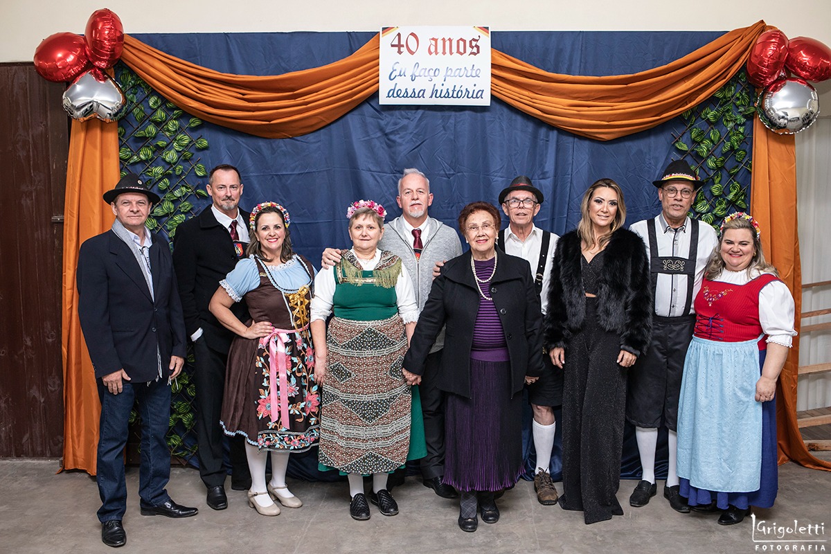 Na noite deste sábado (26) o Grupo de Danças alemãs comemora seus 40 anos na Sociedade Recreativa Sete de Setembro em uma bela festa com integrantes e ex integrantes de todas as idades. A animação foi com a banda Cyclo's para festejar essa história cheia de lembranças e alegrias.