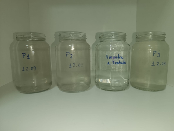 pontos de coleta em locais na praia da Barrinha. Segundo relatou o Professor Eduardo, os pontos ficaram afastados do centro para evitar a poluição atmosférica urbana. pode-se observar uma maior turbidez em comparação com uma amostra controle que era composta de água tratada. Hoje, sexta-feira, teremos algumas análises químicas e físicas dessas primeiras amostras, e por enquanto só a comparação visual, "pois ainda não sabemos o que tem na água, mas normalmente a água da chuva é mais clara e límpida e essa está nitidamente turva" enfatizou. "Vamos ver se nesta sexta-feira muda o padrão. Talvez a chuva derrube muitas partículas suspensas e melhore a qualidade do ar amanhã, a mais clara é água da torneira para comparação, finalizou Vogelmann.