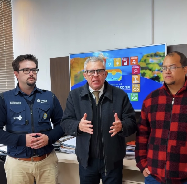 Nesta quinta-feira (26), o prefeito Zelmute Marten recebeu em seu gabinete o diretor do Departamento Nacional de Auditoria do SUS (DENASUS), Rafael Bruxelas, acompanhado da vice-prefeita Fernanda Bork, do secretário de Saúde Diego Elias e da líder do Governo, vereadora Grazi Vasques.