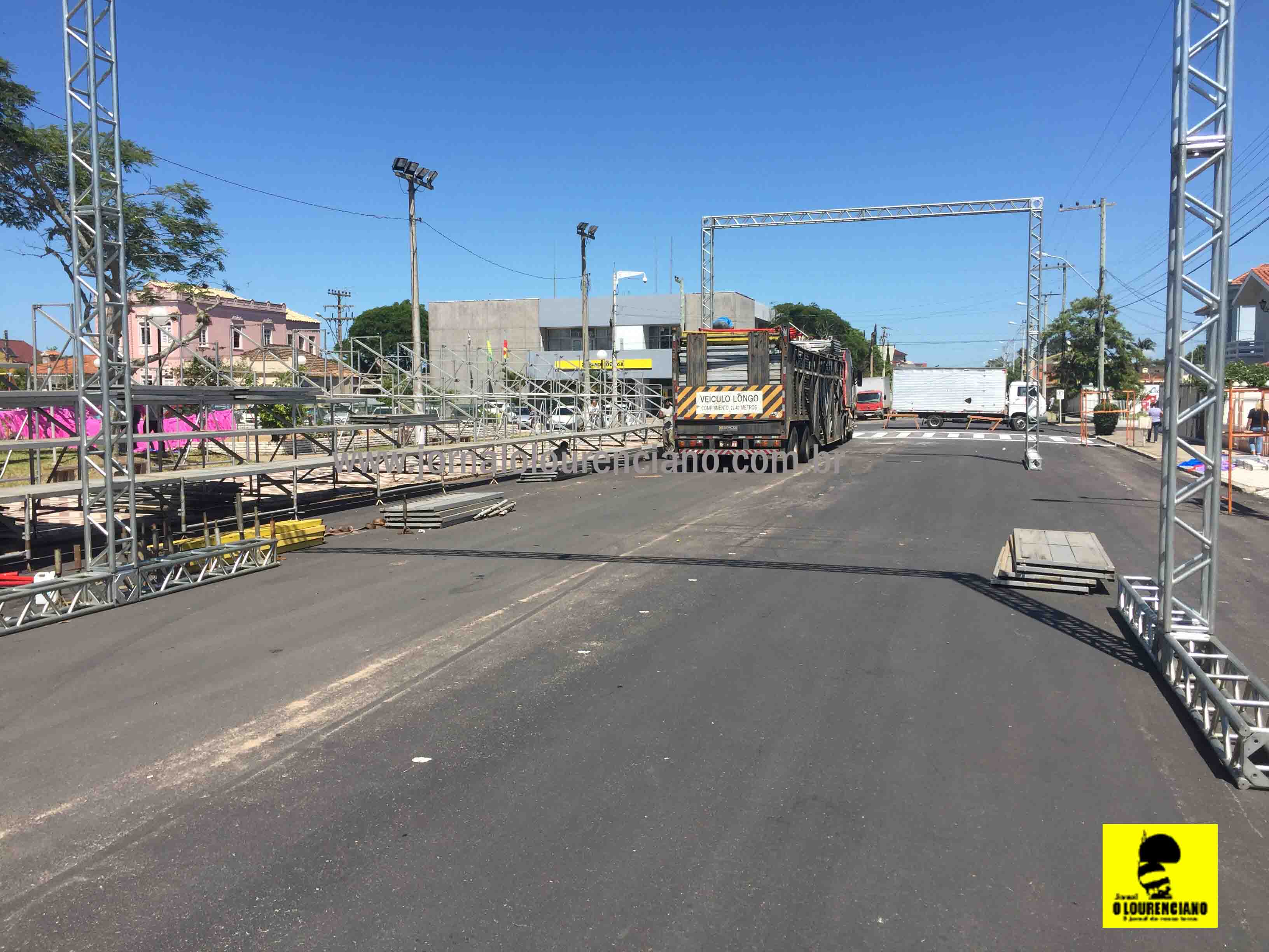 Equipes já trabalham na montagem da passarela para as quatro noites de folia em São Lourenço do Sul. Estruturas de decoração, som, iluminação, arquibancadas e palco, por exemplo, estão sendo instaladas na avenida Marechal Floriano Peixoto, Centro da cidade.
