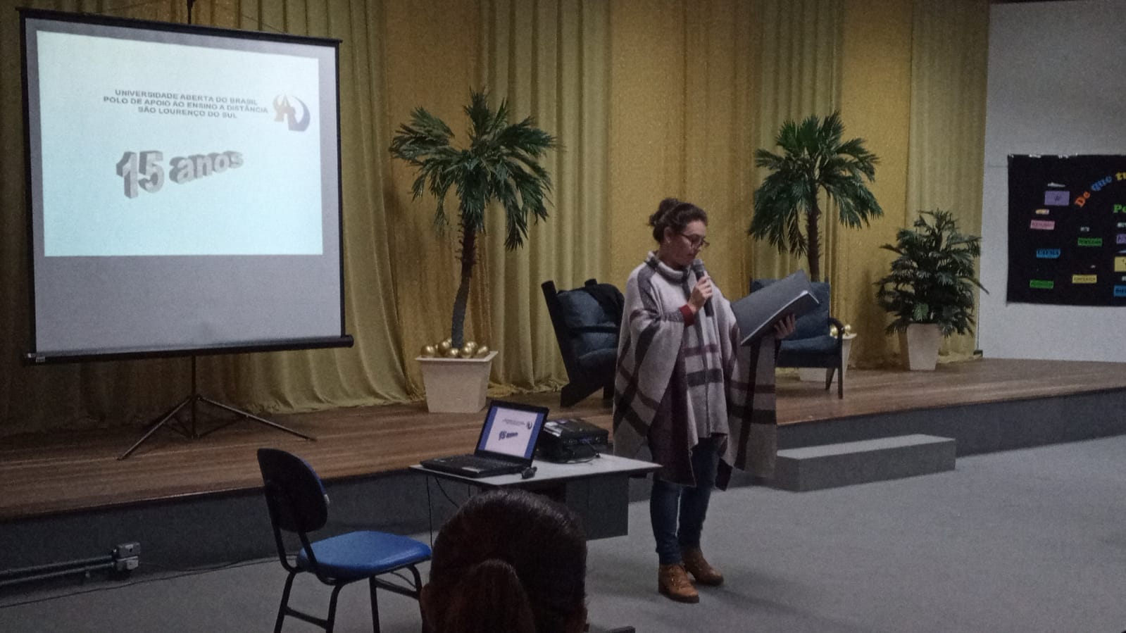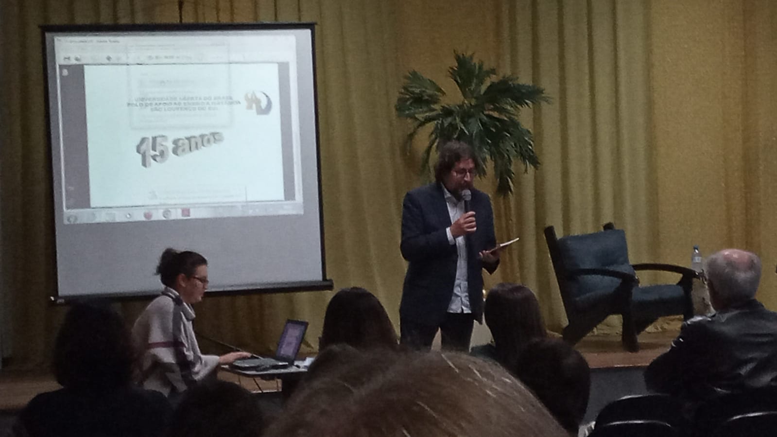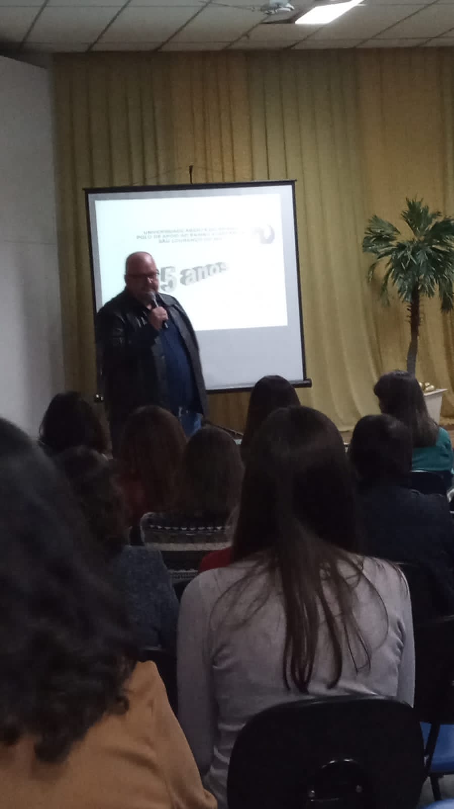 A noite teve início com as boas-vindas do Secretário de Educação, Cultura e Desporto, Fabiano Bosenbecker e contou com a presença de acadêmicos universtários, professores especialmente profissionais que atuam e atuaram no Polo UAB de São Lourenço desde sua criação (2007).