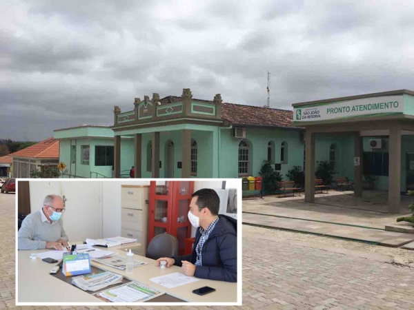 O prefeito Rudinei Härter recebeu na manhã desta sexta-feira (29), o administrador da Associação Beneficente São João da Reserva, Carlos Emanuel Bólico, para a assinatura de contratos em que o Município repassará mais de R$ 2 milhões para investimentos no Centro de Saúde São João da Reserva.
