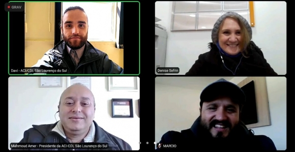 Na manhã desta sexta-feira (21/08), o Presidente da Associação Comercial e Industrial e Câmara de Dirigentes Lojistas (ACI/CDL) de São Lourenço do Sul, Mahmoud Amer, integrou produtiva agenda online com Denise Sefrin, Diretora do Senac Camaquã. Dentre os assuntos discutidos, foram alinhadas pautas de grande relevância em benefício das empresas associadas à entidade, deliberando ações, cursos e capacitações que serão promovidos no decorrer das próximas semanas através da cooperação mútua entre as instituições. Na oportunidade, também participaram da agenda Márcio Gouveia, Líder de Vendas do Senac Camaquã e Davi Schmalfuss Júnior, responsável pelo Departamento Comercial e Relacionamento ACI/CDL.