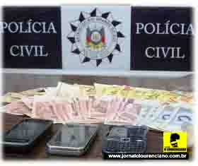 * ÀS 17:38 h da última sexta-feira (3), compareceu à DP local uma policial civil, apresentando presos M. V. O. e F. L. B., em razão dos mesmos terem sido flagrados por volta das 16 h, à rua Otto Gehrke (ao lado do Posto Renascer, na Av. Nonô Centeno), praticando tráfico de entorpecentes, além de estarem de posse de um revólver calibre 32, sem marca aparente. Também foram apreendidos quatro celulares, uma filmadora, R$ 94,00 em moeda corrente e outros objetos. A condutora esclareceu que corre na Seção de Investigações inquérito a respeito de denúncias de disparos de arma de fogo, tráfico de entorpecentes e posse de arma contra os acusados. Após representação pela autoridade policial por mandado de busca a ser efetivado na residência de M. V. e F., ambos foram encontrados na prática de tráfico, sendo apreendida maconha em razoável quantidade, além de ser detido um dependente químico, o qual narrou que estava naquele local para comprar a droga dos dois investigados. A maconha e a arma foram encontradas no quarto de F., que também está sendo usado por M. Diante disso, ambos receberam voz de prisão em flagrante, sendo apresentados à DP local e comunicada a prisão à escrivã, da 1ª Vara Judicial desta Comarca. O Delegado de Polícia Dr. PAULO RICARDO COSTA determinou a lavratura do Auto de Prisão em Flagrante, encaminhando ao Presídio de Camaquã os dois acusados. Tendo em vista o intenso movimento de compradores de drogas naquela residência, já há algum tempo, a Polícia Civil já vinha monitorando o local.