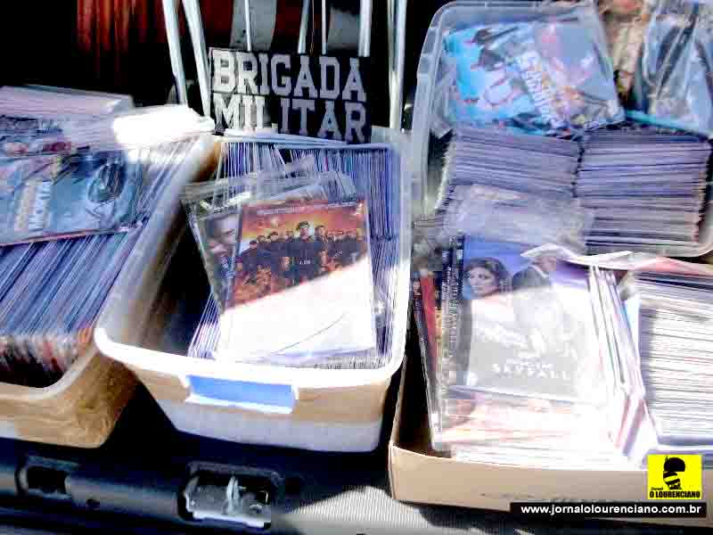 * NA ÚLTIMA sexta-feira (dia 19), por volta das 13:20 h a BM recebeu uma denúncia anônima através do telefone 190, informando que na rua Alfredo Born esquina com a rua Almirante Barroso duas senhoras estavam realizando a venda de CD e DVD piratas. Policiais militares deslocaram-se até o local onde foi flagrado o comércio de CD’s e DVD’s piratas pela dupla. O material foi apreendido totalizando  1078 mídias de diversos autores e cantores, filmes e jogos, sendo 681 DVDS de filmes, 108 CDs musicais, 180 DVDs musicais, 110  jogos de play station II; 03 caixas de plástico (onde eram condicionadas os DVDs e CDs, 01 carrinho de metal, para transporte, 01 bloco de anotações e a quantia de R$ 7,00 em moeda corrente. A dupla foi encaminhada ao HPS logo após a DP local, onde foi efetuado o registro pelo Crimes Contra a Propriedade intelectual, art 184§2ºCPB.