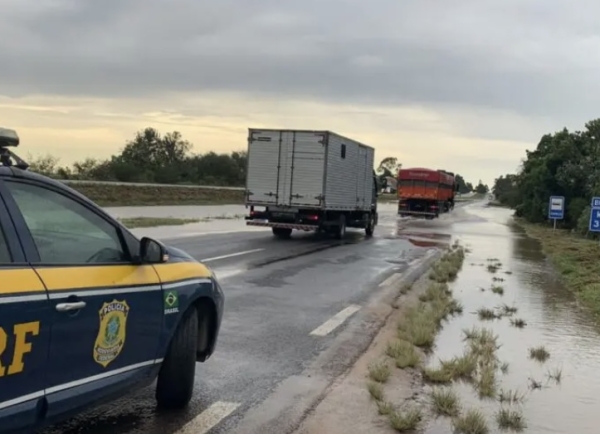 Na região sul, BR-116, em Camaquã (km 386) e Sentinela do Sul (km 330) o trânsito flui com estreitamento devido excesso de água na pista. Policia Rodoviária Federal orienta motoristas nos locais atingidos.