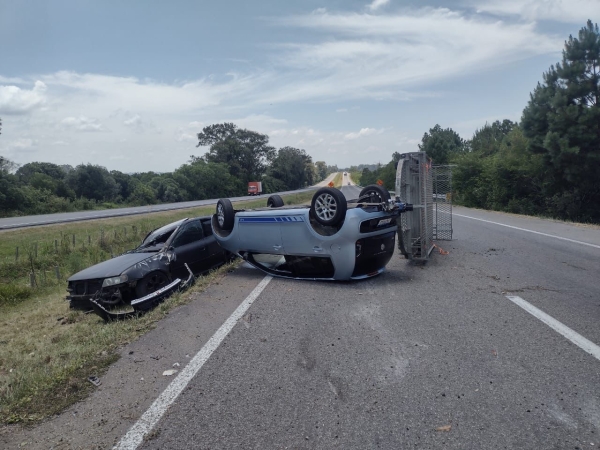 Um veículo Volkswagen UP, que transportava outro automóvel em um reboque perdeu o controle e saiu de pista no Km 494 da BR 116, próximo a Turuçu no sentido São Lourenço.