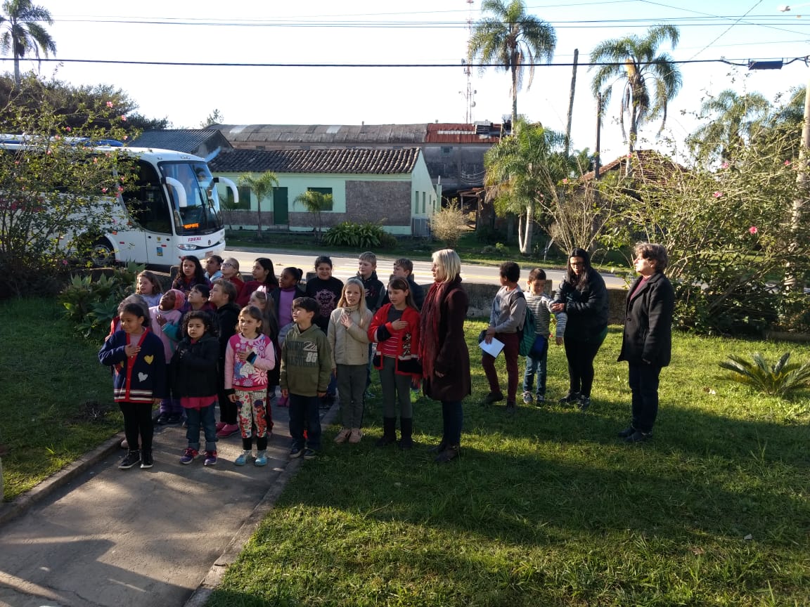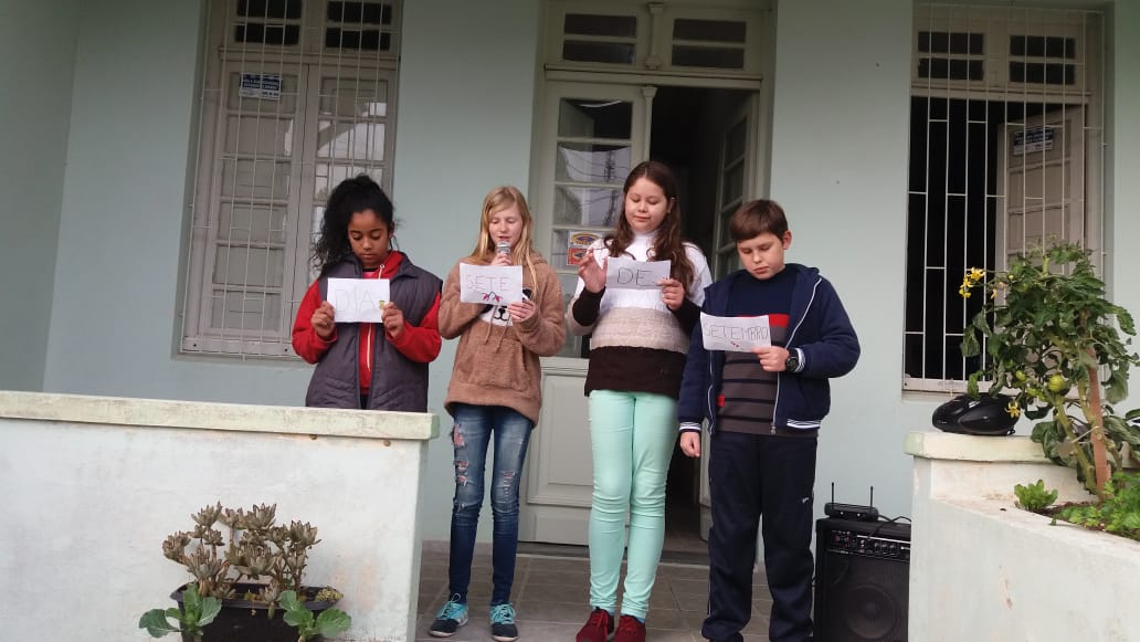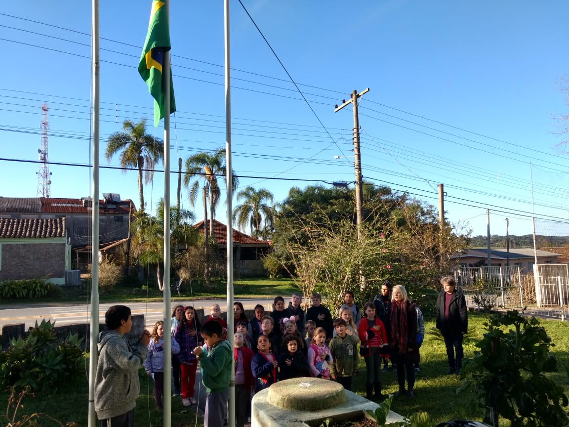 Escola Padre Maximiliano Strauss realizou atividades cívicas realizadas nesta semana, momento em que foi cantado o Hino Nacional e as turmas apresentaram trabalhos referente a Pátria.