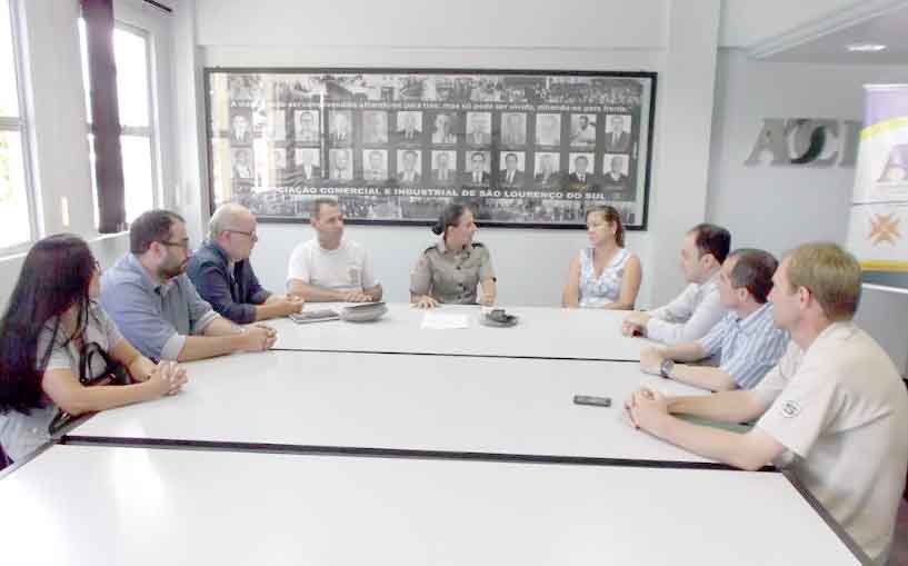 A reunião, promovida pela Associação Comercial e Industrial, através do comando da 2ª CIA/30ºBPM, contou com a participação dos gerentes bancários da cidade de São Lourenço do Sul. O objetivo da reunião, segundo o Tenente Silveira, era expor os números da incidência criminal nas agências bancarias da região, o modo como tem ocorrido esses crimes, o trabalho que a Brigada Militar vem realizando e a importância de medidas preventivas que deverão ser adotadas tanto por parte das agências quanto por parte da BM. A Capitã Pâmela explanou sobre a importância das medidas preventivas, como também do estreitamento do relacionamento com os órgãos de defesa pública e com a comunidade em geral, deixando bem claro que a Brigada Militar está a disposição para ajudar no que for necessário para que os estabelecimentos bancários melhorem suas medidas preventivas e com isso reduza a incidência de crimes nestes locais. BM