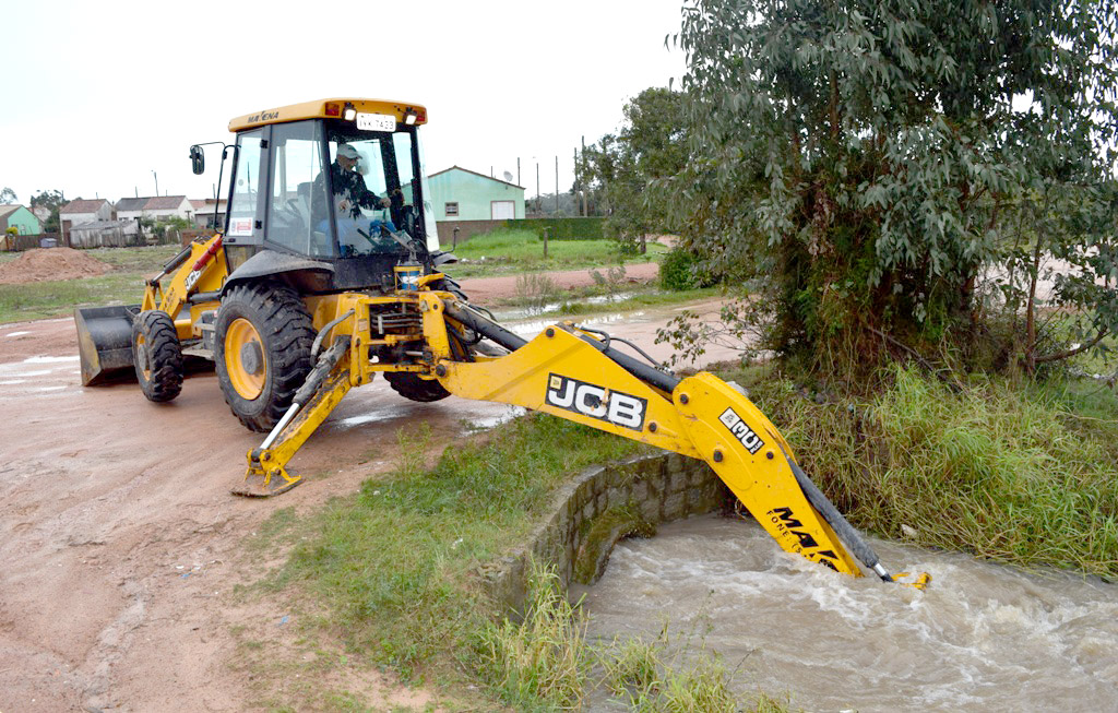 A Secretaria Municipal de Obras e Urbanismo (SMOU) está monitorando a entrada do bairro Nova Esperança e o bairro Banhado Grande, que começa a alagar. Na Rua Plínio Brauner, entre a Rua Max Stenzel e a Avenida Nono Centeno, a SMOU realiza a limpeza dos valos para facilitar o escoamento da chuva.
