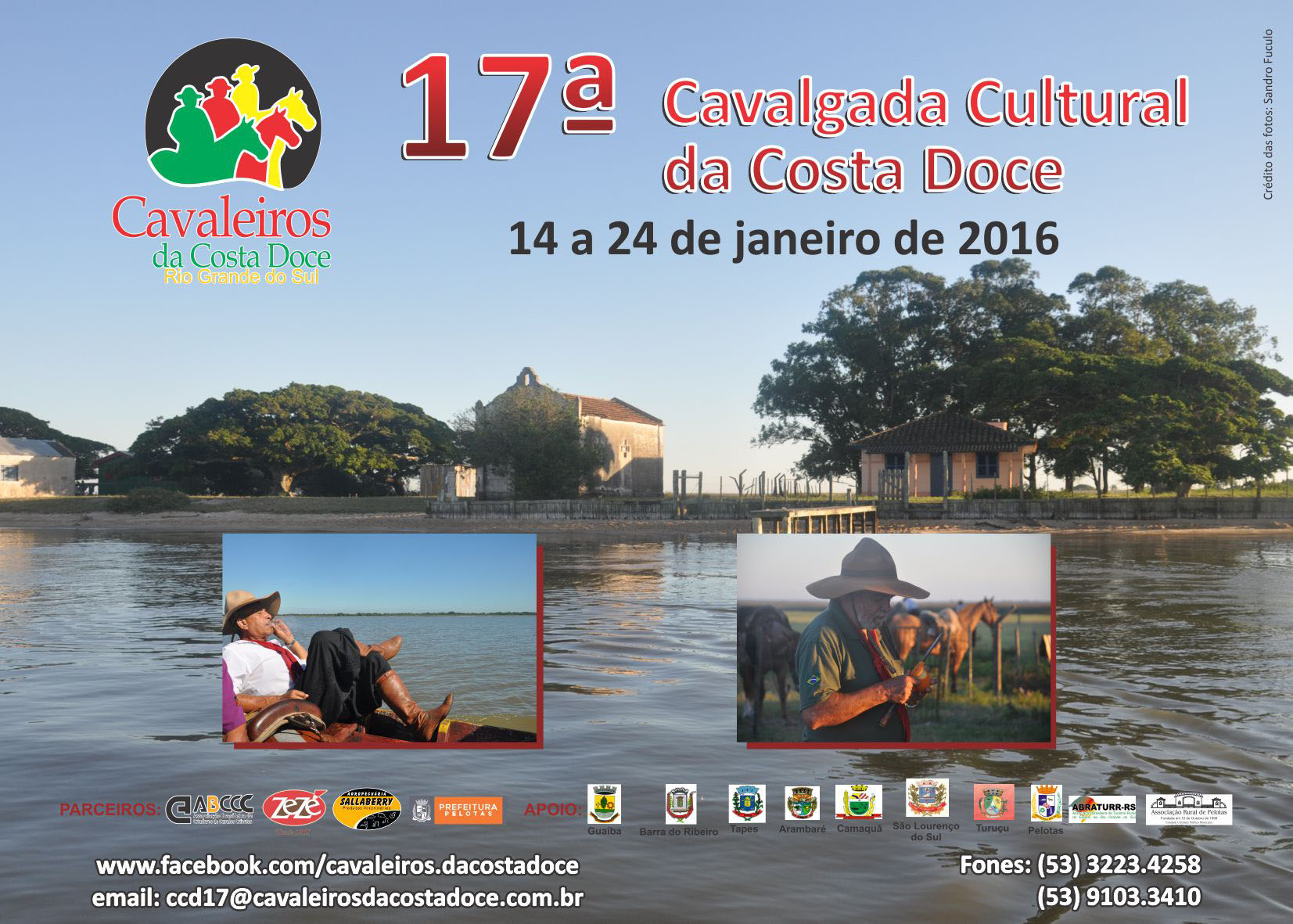 A 17ª Cavalgada Cultural da Costa Doce começa na quinta-feira (14) e chega à Colônia de Pescadores Z3, em Pelotas no domingo (24). Os cavaleiros chegam a São Lourenço do Sul na quinta-feira (21), reunindo-se na Fazenda do Sobrado onde permanecem até a manhã de sábado (23).
